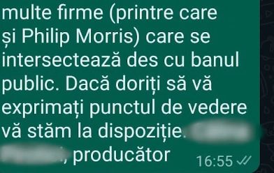 Producătorii emisiunii Culisele Statului Paralel au încercat să afle de ce o companie precum Philip Morrris avea nevoie de serviciile de consultanță ale lui Ponta, însă reprezentantul companiei nu a răspuns .