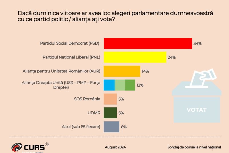 Dacă alegerile prezidențiale ar avea loc duminica viitoare, Nicolae Ciucă ar intra în turul al doilea cu Marcel Ciolacu, într-un sondaj la nivel național realizat de CURS în luna august.