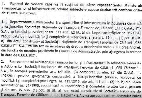 Numire membri, stabilire indemnizatii, mandatarea reprezentantului SNCFR, totul vine de la minister.